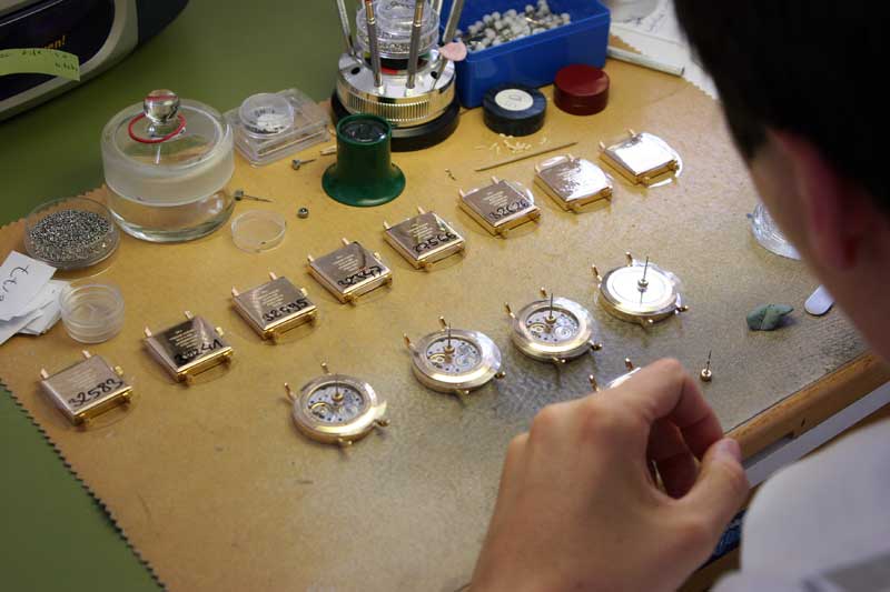 Hier wird an den Tourbillon Werken für Wempe gearbeitet.